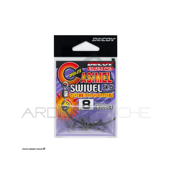 Le SN 15 Casimel Swivel est un émerillon rolling dont l’une des extrémité est ouverte de façon à pouvoir accueillir l’accessoire de votre choix. Cette partie se referme par simple pression au moyen d’une pince.