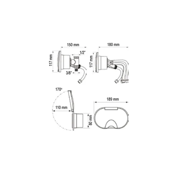 Ensemble douchette et robinet mitigeur Nuova Rade Boitier avec douchette et robinet mitigeur. Couleur du couvercle blanc ou chromé.