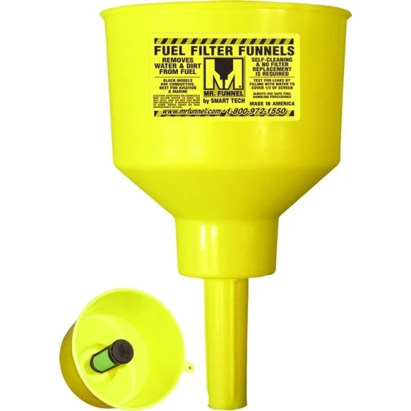 Entonnoir Smart Tech Mr Funnel avec filtre inox Entonnoir ‘Smart Tech de Mr.Funnel’ avec filtre inox intégré de 75 microns couvert d’un revêtement spécial ‘Teflon’ pour éliminer toutes les impuretés et l’eau de votre carburant.