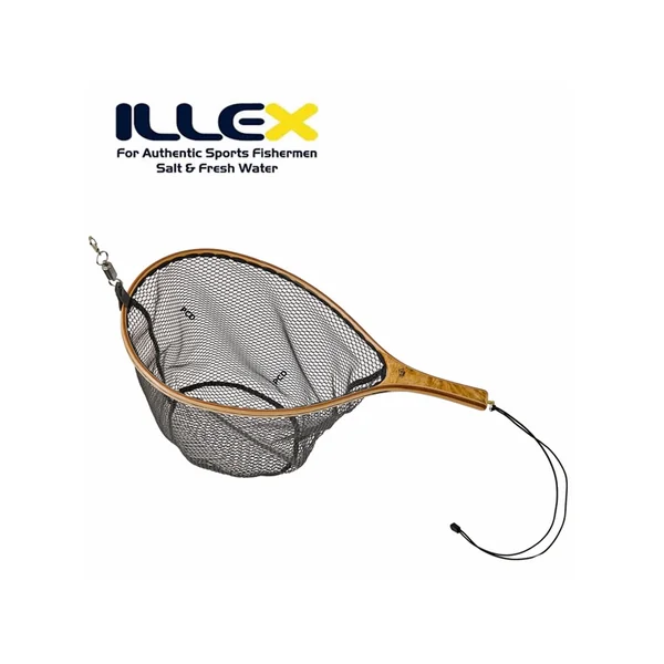 Épuisette raquette en bois vernis finition piano de marque Illex.