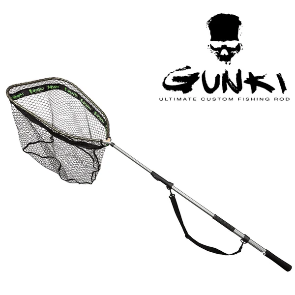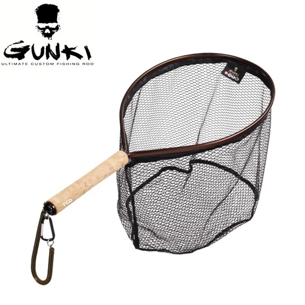 Épuisette raquette, de marque Gunki, adaptée aux pêches de la truite en wading.
