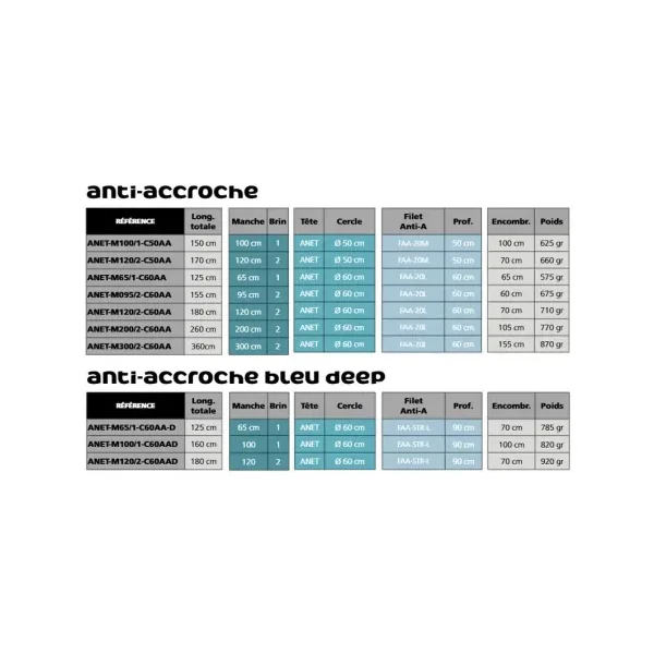 - Filet bleu Deep : Filet profond de couleur moderne et discrète offrant une bonne visibilité pour l’utilisateur sans effrayer les poissons.