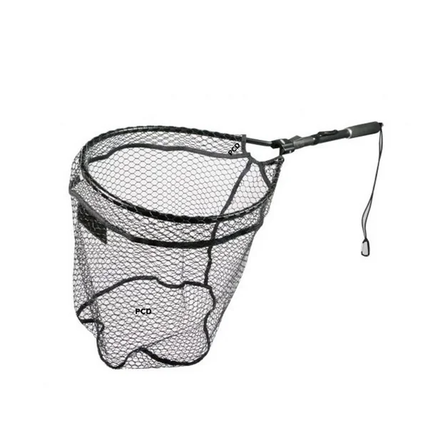 Le manche se replie sur la tête pour en diminuer l’encombrement, afin que celle-ci se fasse oublier dans le dos du pêcheur en action de pêche.