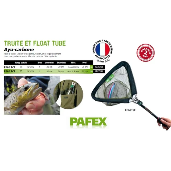 Épuisettes Pafex Ayu-Carbone L’épuisette Ayu-Carbone est principalement destinée à la mise au sec de la truite.