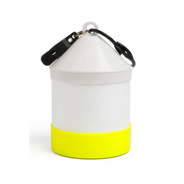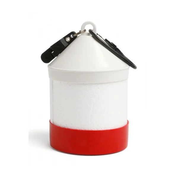 Pour la dérive de nuit il y a un logement au centre du flotteur pour l’insertion d’un cyalume phosphorescent. Flotteur léger haute visibilité avec libération par pression et mousqueton.