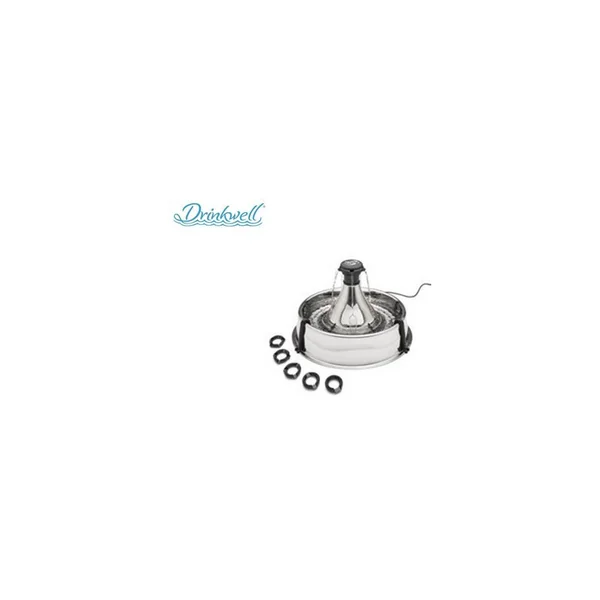 FONTAINE PETSAFE INOX 360° DRINKWELL : Caractéristiques : -Cette fontaine à eau vous permet de mettre à disposition de vos animaux une eau saine. -L’eau de la fontaine est oxygénée en continu grâce à son système breveté d’écoulement libre de l’eau. -Un filtre à charbon remplaçable de très grande taille élimine le goût et les odeurs. -Lavable au lave vaisselle. -Un pré filtre capte les poils et autres particules avant qu’ils n’atteignent le moteur. -La rampe réduit les éclaboussures liées à l’écoulement de l’eau, -Débit de l’eau réglable. Système basse tension (12Volts) -Pompe submersible offrant un fonctionnement silencieux. -Couvercle vérrouillable pour éviter qu’il ne s’enlève par mégarde.