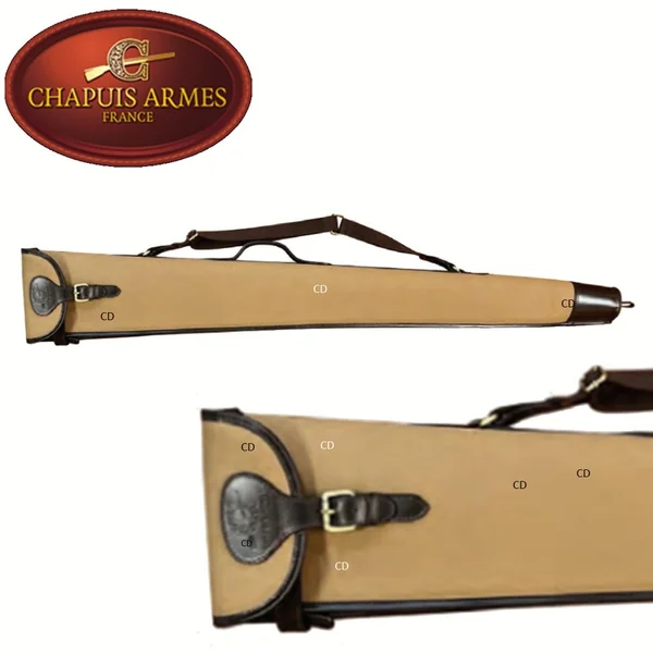 Fourreau fusil, en canevas de couleur sable, avec garniture cuir tout autour de la fermeture éclair, de marque Chapuis Armes.