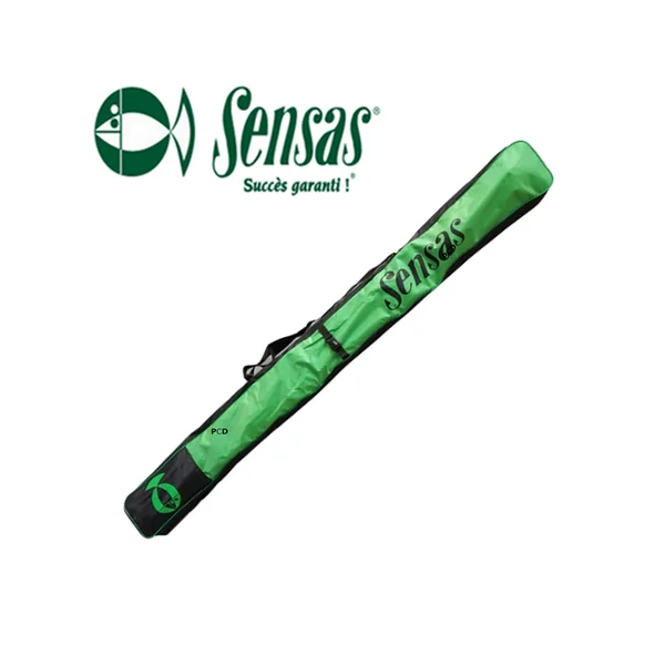 Fourreau, de marque Sensas, avec une poche extérieure et sangle pour bloquer les cannes et les moulinets.