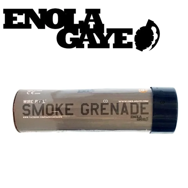 FUMIGENE A GOUPILLE ENOLA GAYE NOIR :Caractéristiques :-Fumigène à goupille, de marque Enola Gaye.-Idéal pour masquer vos mouvements et progresser sans être vu par vos adversaires.-Système d’activation à goupille.-Durée de combustion entre 30 et 60 secondes.*Voir la vidéo !-Ce type de fumigène est idéal pour mettre vos adversaires en difficulté dans un brouillard épais.-Ces fumigènes sont très utilisés en Airsoft et en paintball lors des assauts.*Dimensions : 38 x 130mm.-Poids : 40g.-Résistant à l’eau : oui partiellement.-Système d’activation à goupille.-Vendu à l’unité.-Coloris : Noir.*Soumis à la législation : Carte d’identité OBLIGATOIRE. *DANGEREUX ! Respecter les précautions demploi.