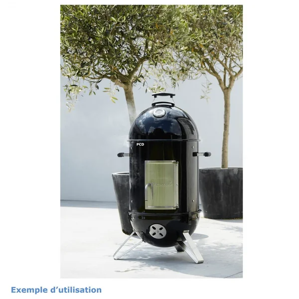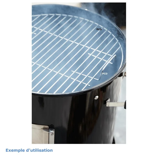 Les grilles de cuisson, de 44cm de diamètre, installées dans la chambre de fumage verticale offrent suffisamment de place pour préparer votre saumon, vos travers de porcs…