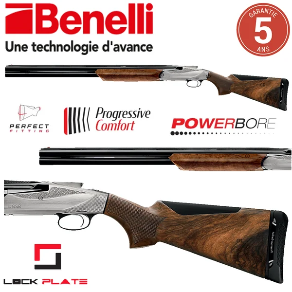 -Il dispose de la seconde génération du système de recul PROGRESSIVE CONFORT qui a été breveté : réduction du recul de plus de 50%, réduction du fouet du canon, action progressive, plaque de couche et busc doux et ergonomiques (interchangeables), poignet pistolet à préhension optimisée,…