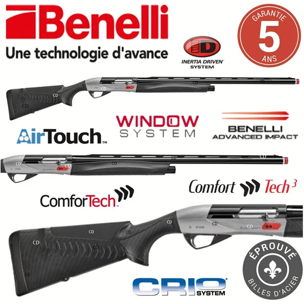 L’ensemble de ces innovations Benelli permettent une diminution de phénomène de fouet du canon, un meilleur contrôle de l’arme et donc de meilleurs résultats au tir.