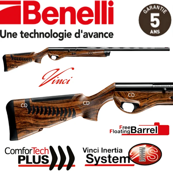 Aujourd’hui Benelli propose le nouveau Vinci révolutionnaire; un fusil calibre 12, chambré 76mm simple, efficace et gracieux.
