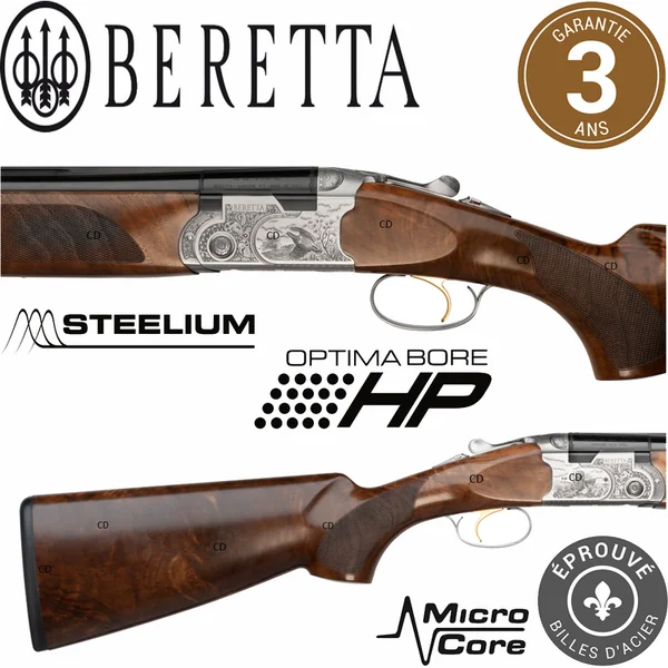 Nouveaux canons et starters optimachokes HP, avec gravure scène de chasse sur ce calibre 410.