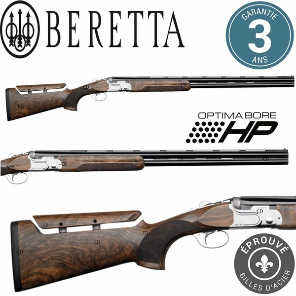 -La bascule, élancée et élégante, mais aussi robuste, est embellie par le contraste existant entre les parties mates et les bords polis miroir qui ornent la surface. Le logo Beretta ressort par sa couleur bleue.