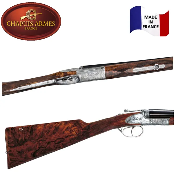 Nouvelle gravure main, signée par un Maître Graveur avec ornementation continue en demi-fond creux et scènes de chasse gravées en taille douce sur les contre-platines et sous la bascule.
