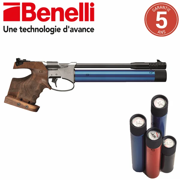 L’alimentation est fournie par un réservoir interchangeable, muni d’un manomètre qui est en mesure d’indiquer la pression résiduelle.