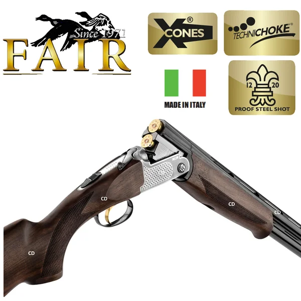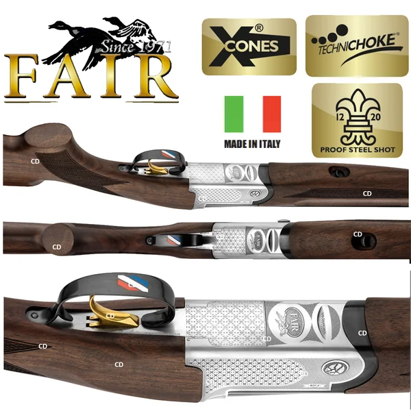 *Garantie 5 ans.Destinés aux différentes disciplines du tir sportif comme à la chasse, les Fair Master sont disponibles en calibre 12 magnum et 20 magnum éprouvés billes dacier.-Fusils livrés avec 5 chokes interchangeables de 70mm (2¾) type TECHNICHOKE® SPORT XP70.-Bascule acier monobloc haute résistance.-Joues de renfort – Double verrouillage à plat.-Crosse en noyer poncé huilé.-Bande plate ventilée.-Mallette offerte pour tous modèles achetés.-Crosse réglable en option.-Tous les modèles de cette gamme ont été sélectionnés pour répondre aux exigences des tireurs de « Sporting ».-La marque FAIR propose donc une offre « SPORTING » complète, accessible, qui se distingue également par la sobriété de ses gravures.-Le seul objectif : permettre à tous les tireurs de retrouver de vraies sensations defficacité et de simplicité !*Caractéristiques Techniques :-Calibre : 12.-Chambre : 76mm.-Longueur des canons : 76cm.-Mono détente sélective. (MDS)-Couleur de la bascule : Argent. (Gravure inédite)-Crosse : Bois poncé, huilé.-Eprouvé bille d’acier.-Ejecteurs.-Livré en mallette, avec 5 chokes interchangeables.-Crosse pistolet.-Poids : 3Kg400 environ.*ARME SOUMISE A LA LEGISLATION : Carte d’identité + Permis de chasse OU Licence de tir VALIDES OBLIGATOIRES.*AUCUNE LIVRAISON NE POURRA INTERVENIR SANS PIECES JUSTIFICATIVES.