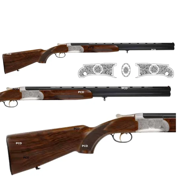 La version Saint-Hubert se distingue par sa bascule en vieil argent gravée de motifs arabesques et floraux, ainsi que sa crosse en noyer 3 étoiles poncée huilée assortie avec calotte gravée.
