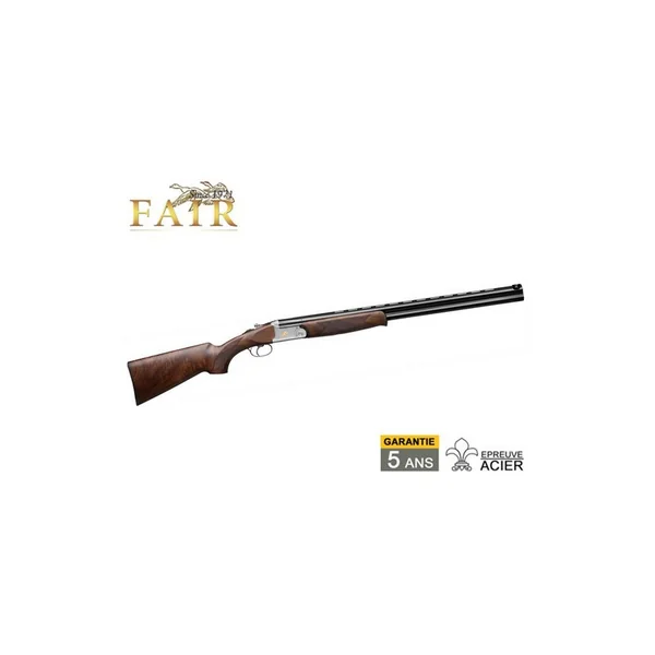 FUSIL SUPERPOSE FAIR CLASSIC ERGAL BECASSE MD 12/76 61CM :*Garantie 5 ans.-La gamme Classic Ergal allie tous les atouts très pisés de la ligne Classic à la légèreté dune bascule en Ergal 55 : maniable, solide, esthétique et confort optimum.-Bascule en Ergal 55 haute résistance.-Double verrouillage bas.-Tourillons acier interchangeables.-Canons en acier à résistance élevée. (UM7)-Bascule couleur argent, avec gravures 3D.*Caractéristiques Techniques :-Calibre 12.-Longueur des canons : 61cm.-Chambre : 76mm.-2 canons à chokes interchangeables.-Finition Bois Poncé Huilé : Procédé spécifique F. A. I. R, à immersion des bois, avec 6 couches de finition, dont 2 avec TRUOIL.-Mono détente. (MD)-Couleur de la bascule : Argent, avec gravures 3D.-Bascule Ergal 55.-Extracteurs.-Crosse pistolet.-Livré avec chokes interchangeables.-Poids : 2Kg650 environ.*Prix de vente conseillé 2018 : 1530€.*ARME SOUMISE A LA LEGISLATION : Carte d’identité + Permis de chasse OU Licence de tir VALIDES OBLIGATOIRES.*AUCUNE LIVRAISON NE POURRA INTERVENIR SANS PIECES JUSTIFICATIVES.