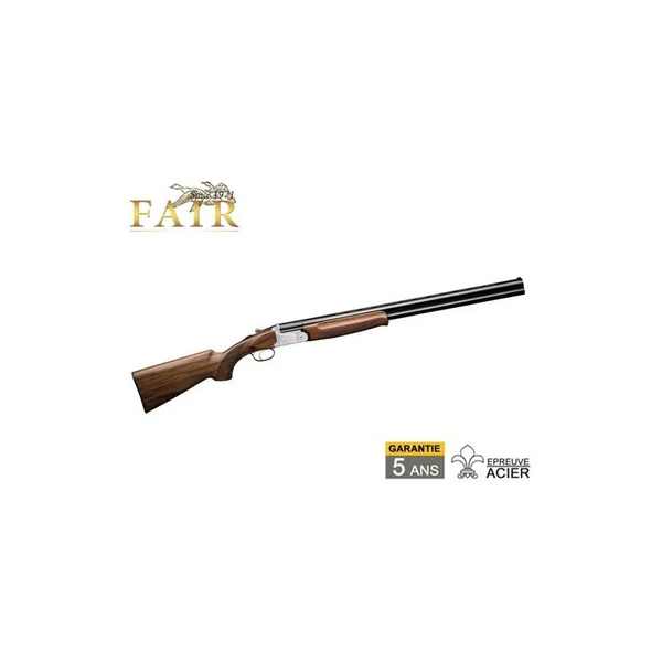 FUSIL SUPERPOSE FAIR LUSSO ACIER MD 12/76 71CM :*Garantie 5 ans.-Fabrication, finition et présentation impeccable pour cette superbe version luxe qui cumule élégance et sécurité au meilleur prix.-Les modèles présentent chacun des détails faisant véritablement la différence.-Queue de détente dorée.-Pontet avec gravure.-Garde main tulipe.-Finition bois poncé huilé.-Bascule en Acier.-Bascule avec joues de renfort et sujets dorés.-Double verrouillage bas.-Tourillons acier interchangeables.-Canons en acier à résistance élevée. (UM7)-Clé ajourée.-Canons Eprouvés billes d’acier.*Caractéristiques Techniques :-Calibre 12.-Longueur des canons : 71cm.-Chambre : 76mm.-Mono détente. (MD)-Livré avec 5 chokes interchangeables.-Couleur de la bascule : Argent avec gravure 3D.-Bascule Acier.-Crosse : bois huilé.-Ejecteurs.-Crosse pistolet.-Poids : 3Kg200 environ.*Prix de vente conseillé 2018 : 1660€.*ARME SOUMISE A LA LEGISLATION : Carte d’identité + Permis de chasse OU Licence de tir VALIDES OBLIGATOIRES.*AUCUNE LIVRAISON NE POURRA INTERVENIR SANS PIECES JUSTIFICATIVES.
