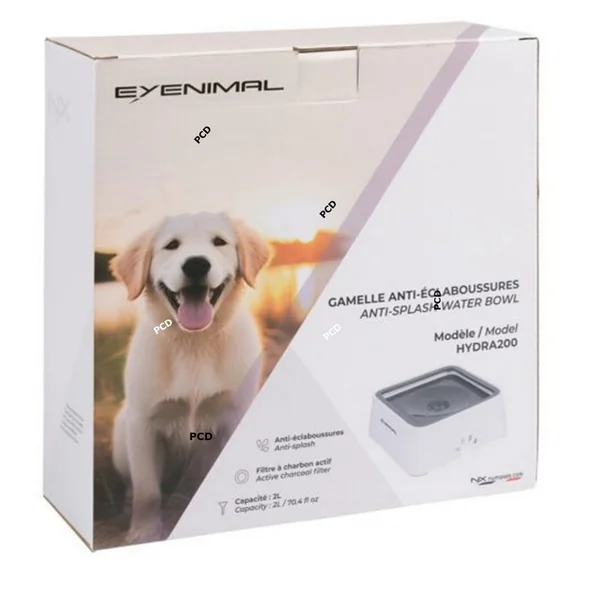 La gamelle à eau Hydra200, de marque Eyenimal, distribue de l’eau propre de façon progressive afin de permettre à votre animal de boire plus lentement et d’éviter d’avoir un sol détrempé.