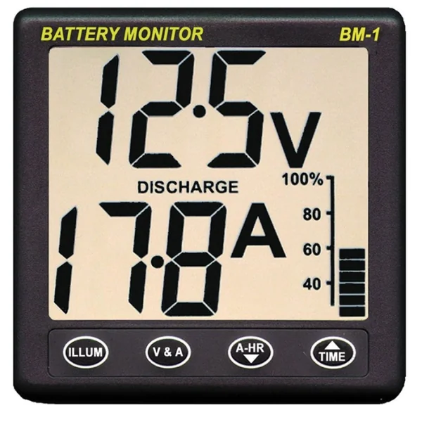 – Contrôle votre parc batterie de 5 à 600 Amps heures, il affiche sur grand écran, le voltage, la consommation instantanée, le nombre d’ampères restant, le temps nécessaire à la charge ou à la décharge ainsi que le niveau d’usure de vos batteries.