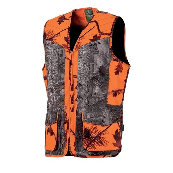 Gilet de chasse, coloris Camo orange fire, très léger, de marque Treeland.