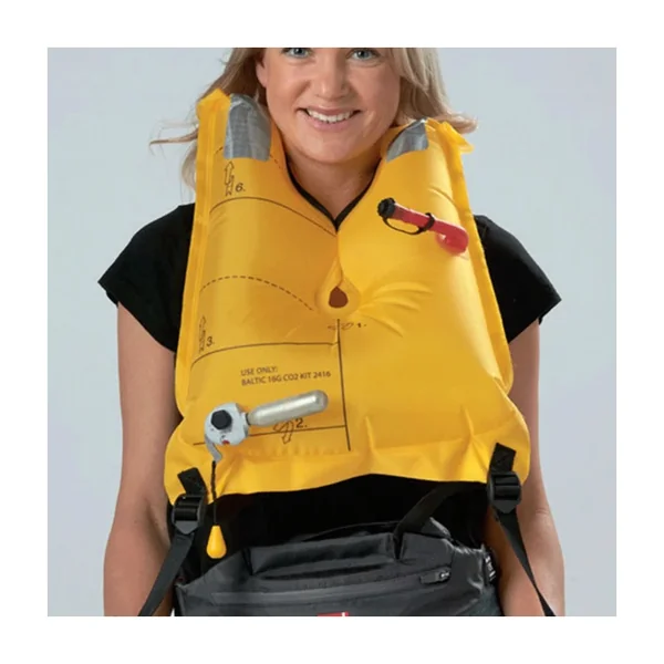 Le VFI s’adapte confortablement autour de votre taille et dissimule la vessie 50 N. certifiée ISO (EN ISO 12402-5 / 12402-6). Pour se déployer, si vous en avez besoin, tirez simplement la vessie gonflable hors de la poche, placez-la sur votre tête et gonflez-la en tirant sur le cordon de gonflage, sans aucun réglage. Une fois déployé, le VFI peut être réarmé en remplaçant la bouteille de gaz par une autre bouteille de CO2 de 16 g, ce qui signifie qu’il peut être utilisé plusieurs fois.
