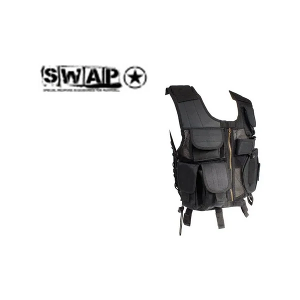 GILET NOIR AVEC HOLSTER SWAT : Caractéristiques : -Gilet noir avec holster *Couleur : noir,