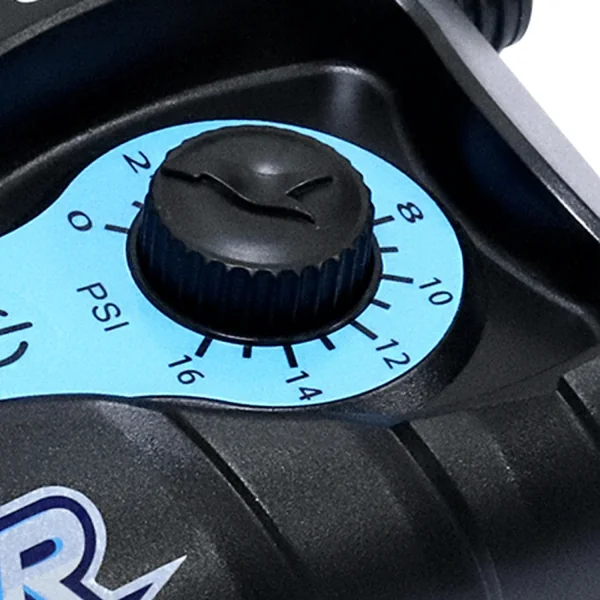 La pression du gonfleur est adaptable. Il vous sera facile de régler la pression de gonflage, grâce à la molette présente sur le gonfleur. Cela vous permet d’adapter la pression en fonction de ce que vous souhaitez gonfler.