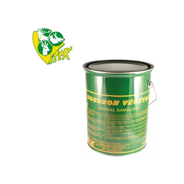 GOUDRON DE NORVEGE SPECIAL SANGLIER 5KG VITEX :Caractéristiques :-GOUDRON SPECIAL SANGLIER le seau métallique de 5kg.-Nos Goudrons Sangliers à viscosités adaptées résultent de la distillation du bois de pin.-« SPECIAL SANGLIER » En bidon métallique de 5kg consistance pâteuse, ce qui permet un réchauffage au bain-marie en cas d’utilisation hivernale ou en jerrycan plastique un peu plus liquide et plus facile d’emploi en été.*Disponible par 1 seau ou en pack de 4 seaux.-Pour de grosses quantités merci de nous contacter ! *DANGEREUX ! Respecter les précautions demploi.