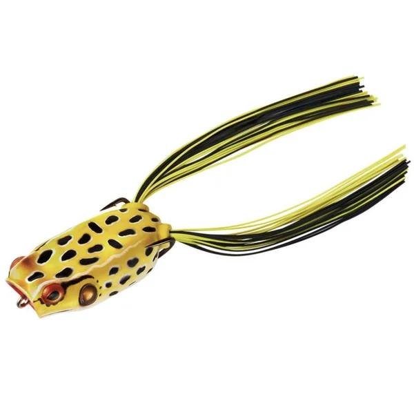 La grenouille Poppin Pad Crasher Junior est une frog popper de la marque Booyah imitant à la perfection une petite grenouille. Contrairement à la Pad Crasher Jr, la version Poppin génère des trainées de bulles sur son passage, grâce à sa gueule concave et une animation en stop and go. Avec des tirées moins prononcées, elle renverra des gerbes et des gouttelettes d’eau (spitting), créant ainsi un fort sillage attractif.