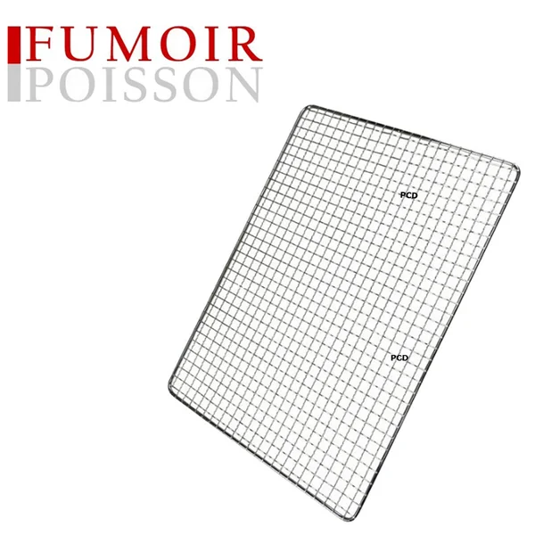 Grille pour fumoir, type fumoir à viande et à poisson, en inox, de forme rectangulaire.