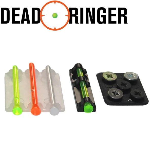 GUIDON COURT UNIVERSEL DEAD RINGER ACCU-BEAD 25MM :Caractéristiques :-Guidon court, universel, de marque Dead Ringer. *Pack composé de :-1 support guidon en aluminium usiné.-4 fibres optiques interchangeables.-un jeu de 5 vis tous standards*-Longueur de 25mm.*Tous les packs Dead Ringers sont livrés avec des jeux de 5 vis standards : 6-48 (Remington, Ithace, Weatherby, SKB), 5-40 (Mossberg, Stoeger), 3-56 (Browning target, Berett, Winchester, Benelli, Krieghoff, Ruger), M3 x .5 (Browning gold, Winchester, Mossberg, CZ-USA), M2.6 x .45 (Beretta, Benelli, Stoeger).