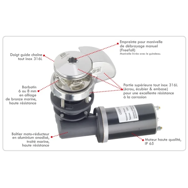 et d’un capteur de série pour compteur de chaîne. Caractéristiques Guindeau électrique vertical sans poupée Plastimo