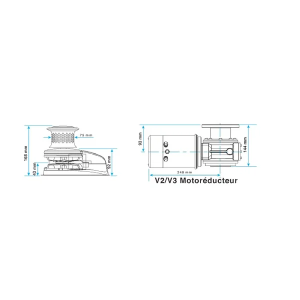 -Un motoréducteur à vis sans fin robuste et fiable Caractéristiques Guindeau Lewmar Vertical V3 12V – 1000W avec poupée