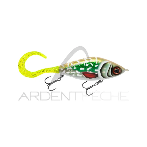 - Avec des twitches, en ponctuant votre récupération de mouvements secs du scion de votre canne, le Guppie JR réalisera des écarts latéraux comme un jerkbait. Pour que ces écarts soient plus longs, laissez un peu de mou dans votre bannière.