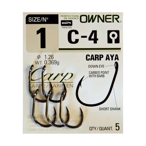 Hameçon carpe Owner C4 Aya – Hameçon noir, anneau soudé