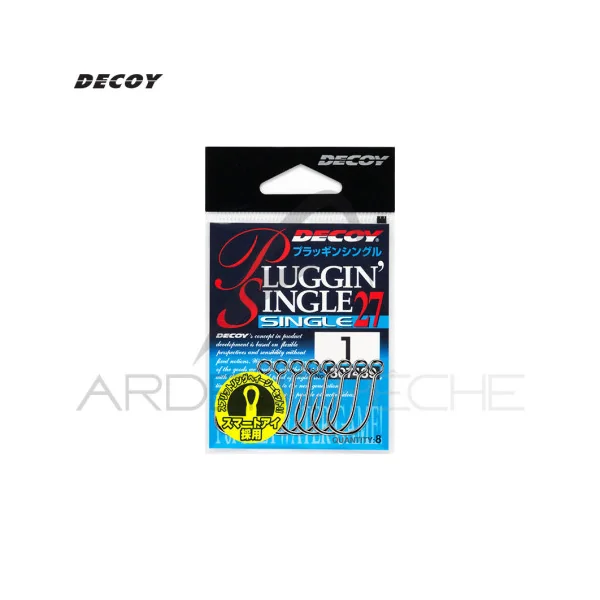 Le Single 27 Pluggin’ est un hameçon simple dont l’oeillet est positionné dans l’axe afin d’équiper les poissons nageurs. Son oeillet large permet de l’associer avec tout type d’anneau brisé. Le Single 27 est plaqué à l’étain et bénéficie d’un traitement aquablock qui le protègent de la rouille et de la corrosion.