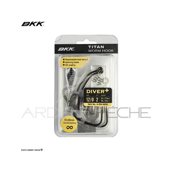 - Hameçon texan BKK Titan Diver conçu pour gros leurres souples.