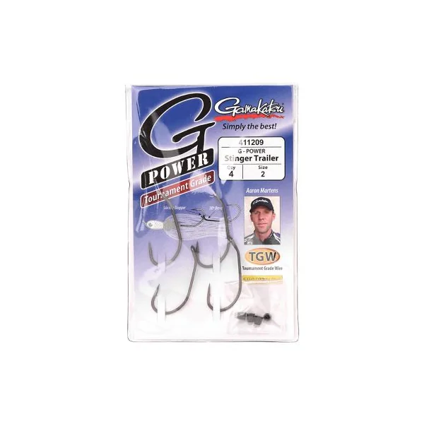 Le G-Power Stinger Trailer Hook développé avec le champion Aaron Martens, est conçu pour maximiser le taux de réussite lorsque vous pêchez avec des spinnerbaits.