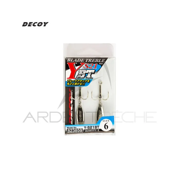 Le YS 21 Blade Treble est un hameçon triple muni d’une palette tournante. L’hameçon YS 21 qui sert de base au montage intègre un émerillon rolling (directement moulé dans l’axe) sur lequel est fixé une palette argentée de type « feuille de saule ».