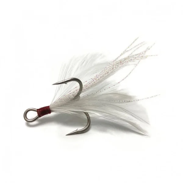 De plus, les Treble Hook Feather disposent de plumes ligaturées sur la tige de l’hameçon, celles-ci apportent des vibrations supplémentaires et un point cible à attaquer pour les carnassiers. Elles permettent d’accessoiriser vos poissons nageurs ou vos jig métalliques pour les rendre plus attractifs.