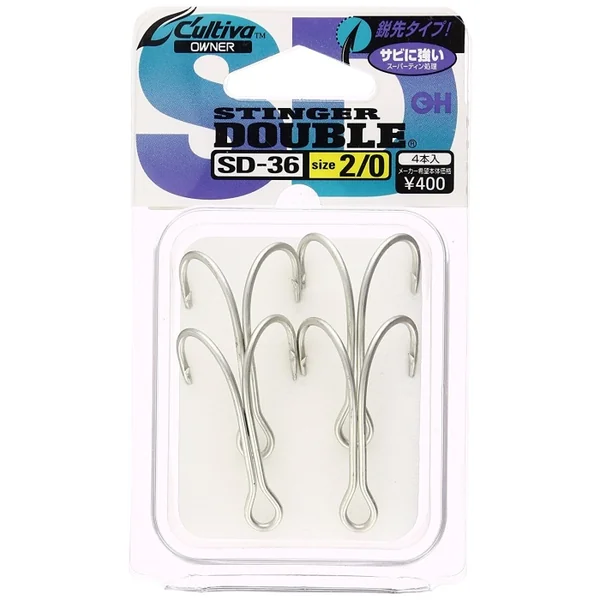 Hameçons Double Owner SD36 – n°6 x7pcs Owner est le leader des hameçons dans le monde. Ce prodigieux succès est dû au travail de chaque personne chez OWNER, mais aussi des ingénieurs qui mettent au point des procédés pour améliorer, jours après jours, la forme, le piquant, la résistance, le packaging des hameçons.