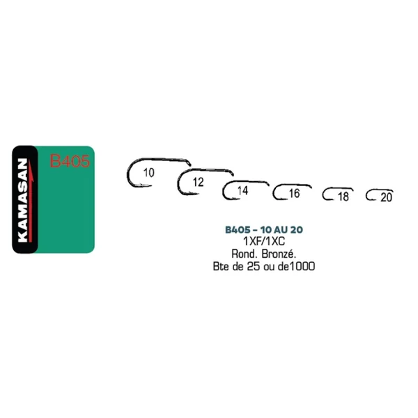 Hameçons KAMASAN B405 – Boite de 25 – H14 1XF/1XC