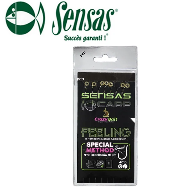 Bas de ligne prêt à l’emploi de 15cm avec un hameçon 4015 sans ardillon et à œillet, de marque Sensas, équipé d’une bague à esche pour pouvoir y loger un pellet.