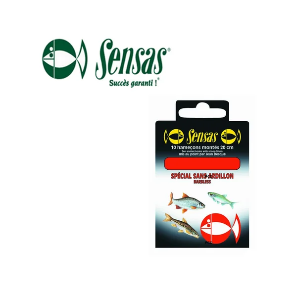 Hameçons montés sans ardillon de marque Sensas, Bas de ligne de 20 cm.