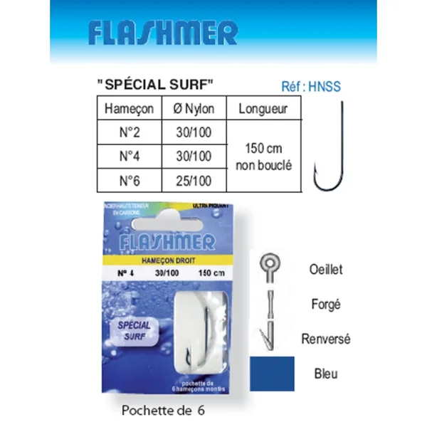 Pochette de 6 Avis Hameçons Montés Special Surf X 6 Hameçons N°6 sur 25/100 Écrivez votre avis