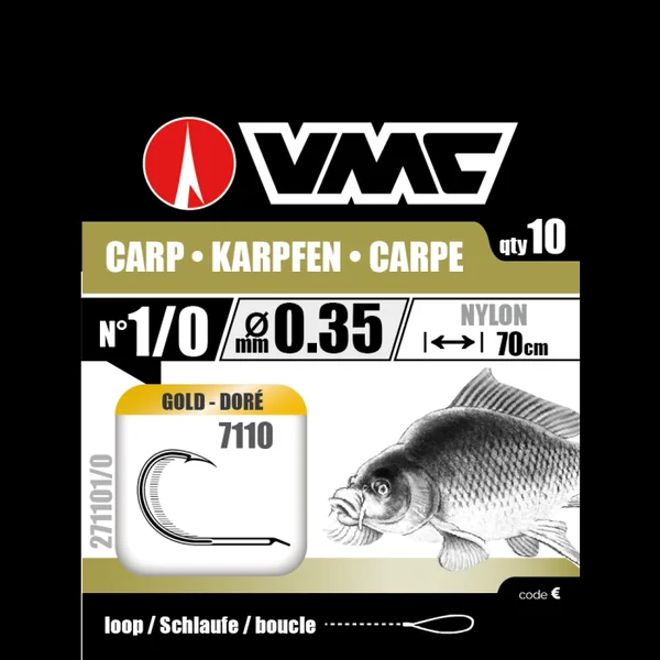 Hameçons montés Vmc 7110 Carp Gold – n°1 Pochette de 10 bas de ligne spéciale carpe .